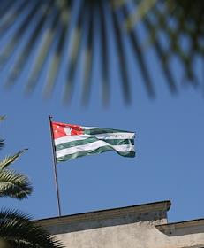 Государственный флаг Абхазии на здании.
