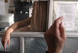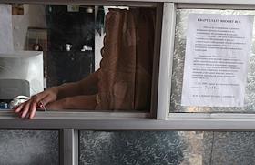 Выдача денежной помощи населению города Цхинвал. Кассир в окошке банка.