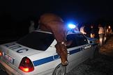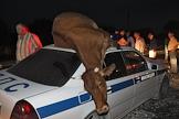 Столкновение патрульного автомобиля милиции (ДПС) и коровы на загородной трассе.
