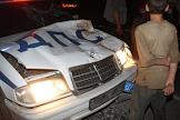 Автомобиль патрульной службы милиции (ДПС) после аварии на загородном шоссе.