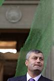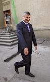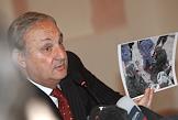 Президент Южной Осетии Эдуард Кокойты у разрушенного здания Правительства Республики.