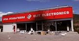 Разбитое и сгоревшее здание магазина бытовой техники Elit Electronics после боевых действий в городе.
