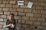 Выдача денежной помощи населению города Цхинвал. Мужчина ищет свою фамилию в списках на стене.