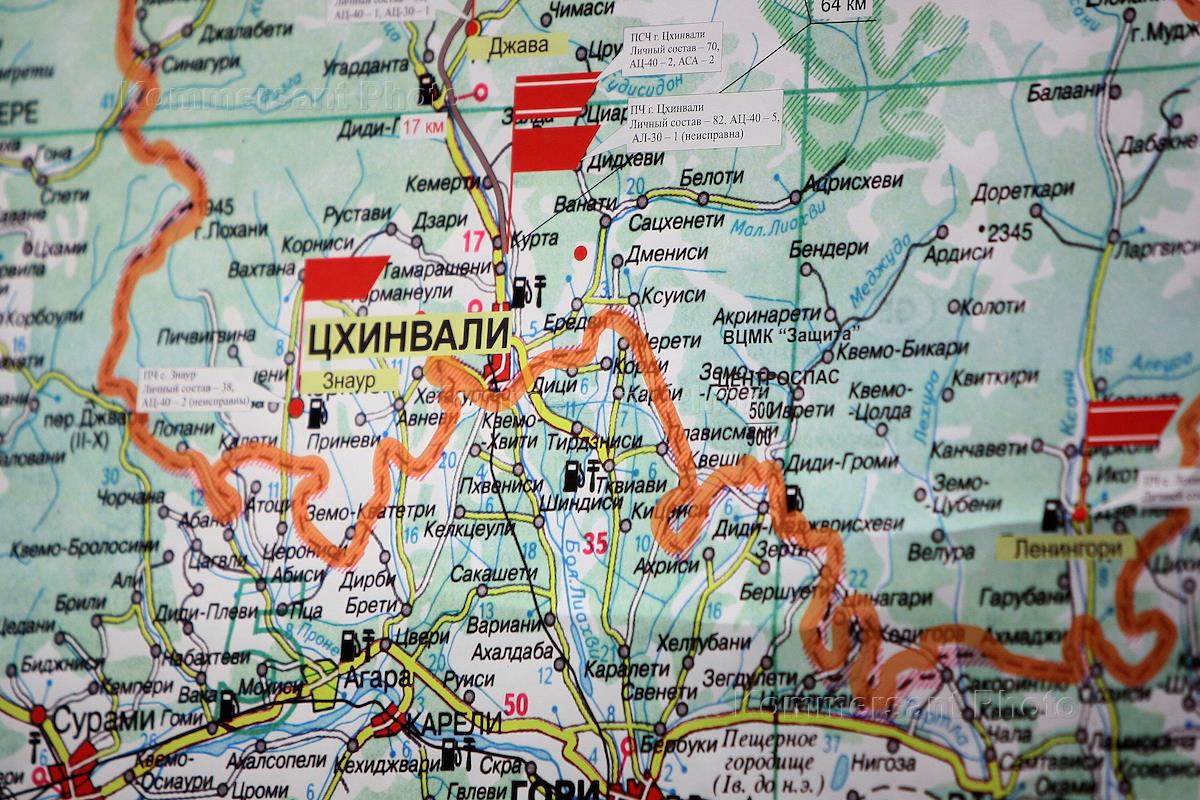 Карта Южной Осетии на стене в РИА "Новости" во время пресс-конференции на тему: "Восстановление Южной Осетии".