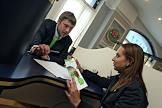 Офис "ОТП Банка" на Покровке. Сотрудник банка во время работы с клиентом.