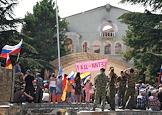Грузино-югоосетинский конфликт. Митинг у Дома правительства Южной Осетии в городе Цхинвал.