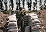 Грузино-югоосетинский конфликт. Российский военнослужащий на КПП при въезде в город Цхинвал.