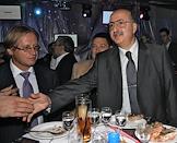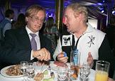 Руководитель компании "Уникум" Борис Белоцерковский (слева) и председатель Совета директоров компании "Вимм-Билль-Данн" Давид Якобашвили (справа) на презентации первого номера издания "Mск Собака.ru — журнал о людях в Москве".
