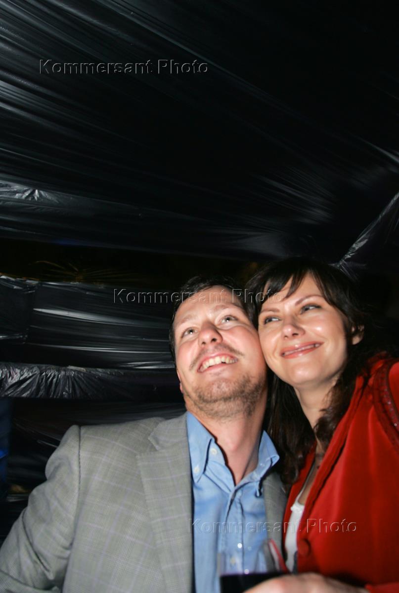 Руководитель департамента промоушена и связей с общественностью ЗАО "Русская Медиагруппа" Андрей Нестеров (слева) на презентации первого номера издания "Mск Собака.ru — журнал о людях в Москве".