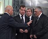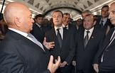 Мэр Москвы Юрий Лужков (слева), президент России Дмитрий Медведев (второй слева)и начальник Московского метрополитена Дмитрий Гаев (справа) во время торжественной церемонии открытия станции метро "Славянский бульвар" Арбатско-Покровской линии Московского метрополитена.