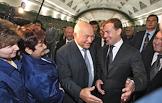 Мэр Москвы Юрий Лужков (слева) и президент России Дмитрий Медведев (в центре) во время торжественной церемонии открытия станции метро "Славянский бульвар" Арбатско-Покровской линии Московского метрополитена.