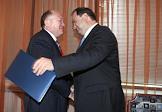 V Байкальский экономический форум. Президент ОАО "Объединенная авиастроительная корпорация" (ОАК) Алексей Федоров (слева) и губернатор Иркутской области Игорь Есиповский (справа) на церемонии подписания соглашения между Иркутской областью и Объединенной авиастроительной корпорацией, в рамках которого на территории области будет развиваться авиастроение.