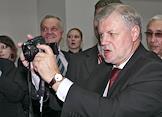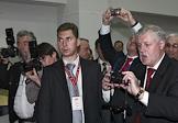 V Байкальский экономический форум. Председатель Совета Федерации России Сергей Миронов с фотоаппаратом (справа) после заседания форума.