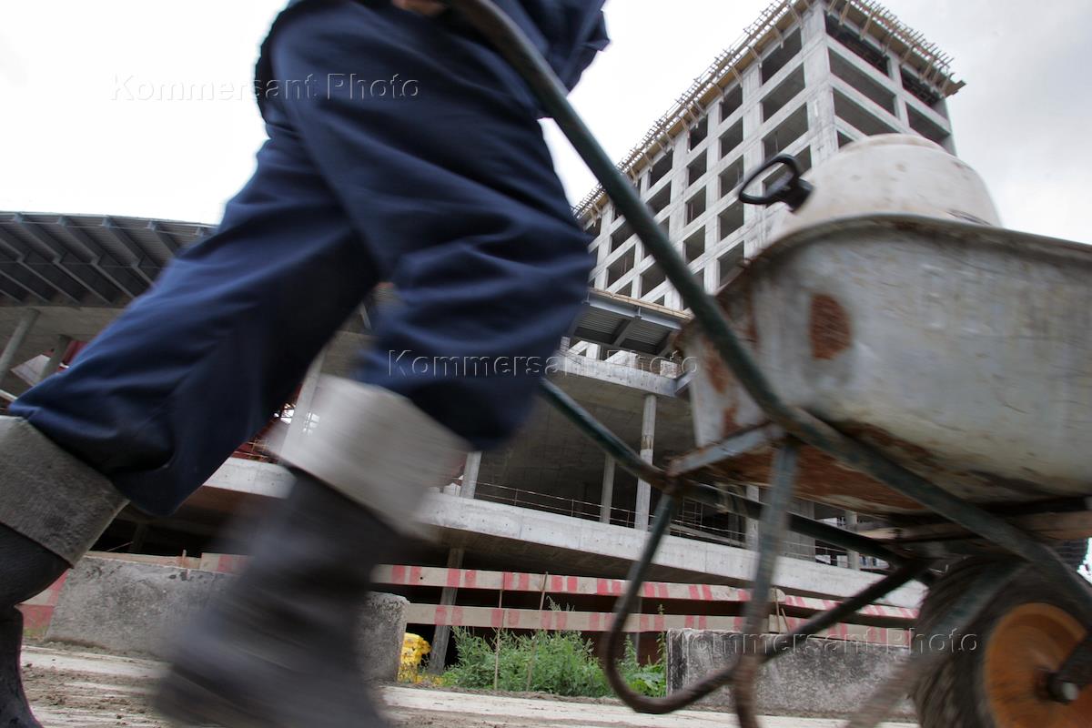 Рабочие на строительной площадке Московской школы управления "Сколково".