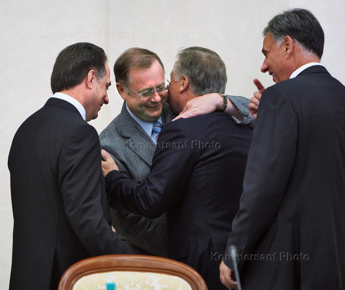 Министр транспорта России Игорь Левитин (слева) и губернатор Краснодарского края Александр Ткачев (справа) после окончания заседания президиума совета при президенте России по подготовке к Олимпийским играм в Сочи в 2014 году.