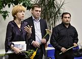 Телеведущий Василий Уткин (справа) во время церемонии вручения премии "Телепресса". Церемония состоялась в офисе "Радио Свободы".