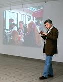 Главный редактор "Художественного журнала" Виктор Мизиано на выставке "7 грехов: Любляна-Москва" в ЦСИ "МАРС".