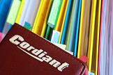 Ежедневник с надписью Cordiant среди деловых папок на полке в холдинге "Сибур - Русские шины".