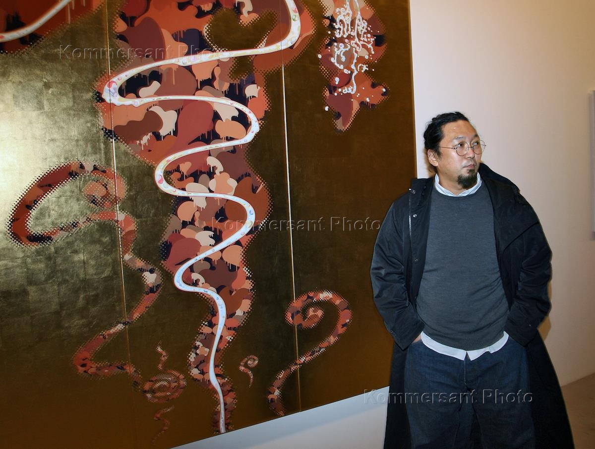 Художник Такаси Мураками на приеме, посвященном открытию галереи Gagosyan и выставки "То, что вам предстоит" от галериста Ларри Гагосяна на территории бывшей кондитерской фабрики "Красный Октябрь". Прием и выставка организованны Prime Concept и группой "Гута".