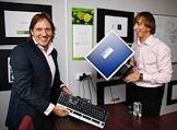 Генеральный директор управляющей компании (УК) Avant Group Андрей Канорский (сидит) и его заместитель Артем Колесов (стоит) в офисе компании.