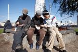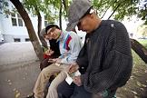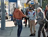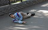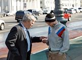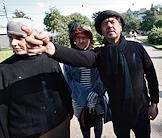 Директор продюсерского центра "КнязевЪ" Сергей Князев (справа) в гриме на улице во время ролевой игры.