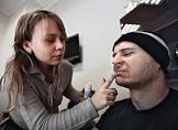 Сотрудников Продюсерского центра "КнязевЪ" гримируют перед началом ролевой игры.