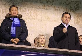 Лига чемпионов. Глава РАО "Газпром" Алексей Миллер (слева) и министр по спорту, туризму и мололдежной политики России Виталий Мутко (справа) во время матча между командами "Зенит" (Россия) – "Реал" (Испания).