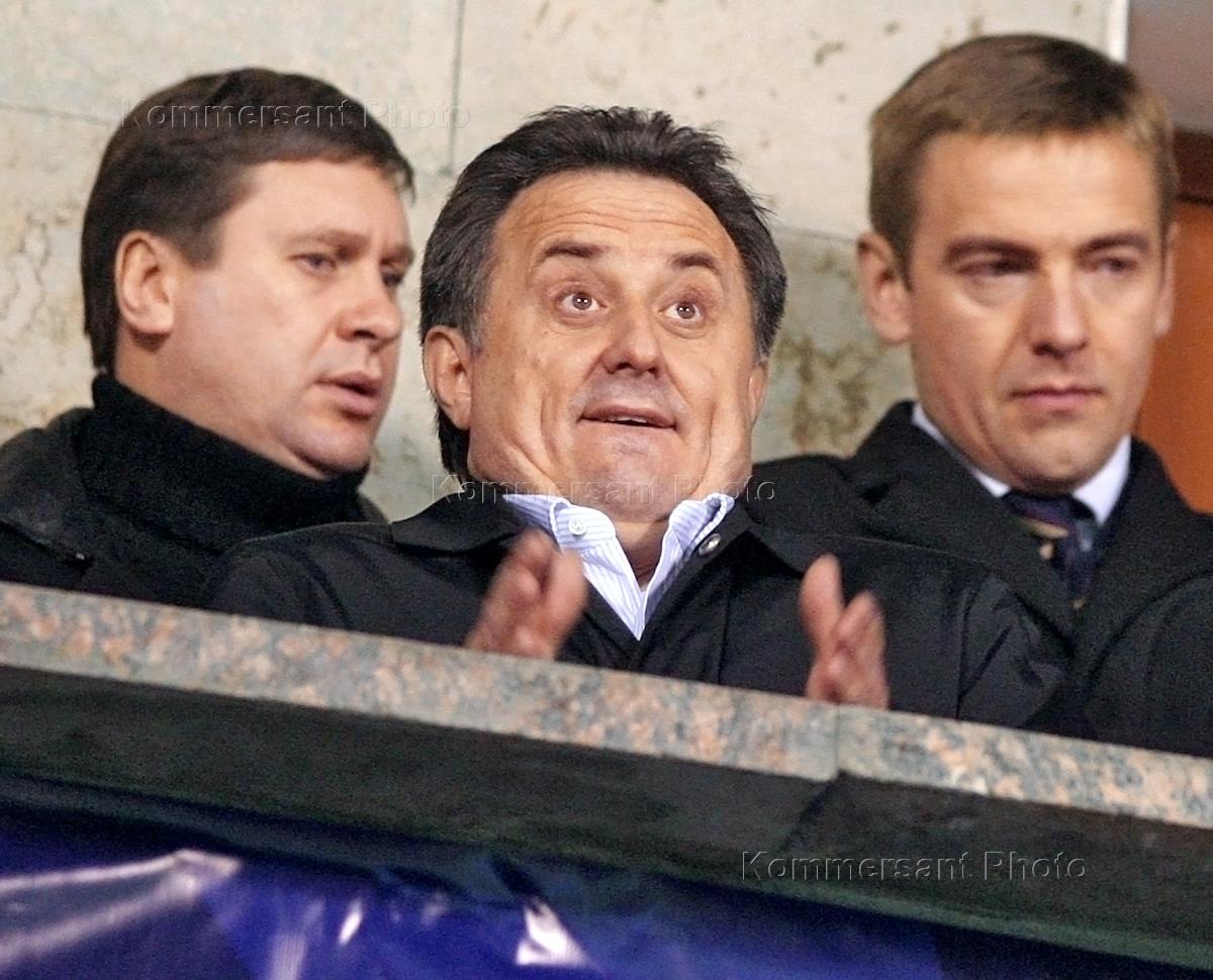 Лига чемпионов. Министр по спорту, туризму и мололдежной политики России Виталий Мутко (в центре) во время матча между командами "Зенит" (Россия) – "Реал" (Испания).