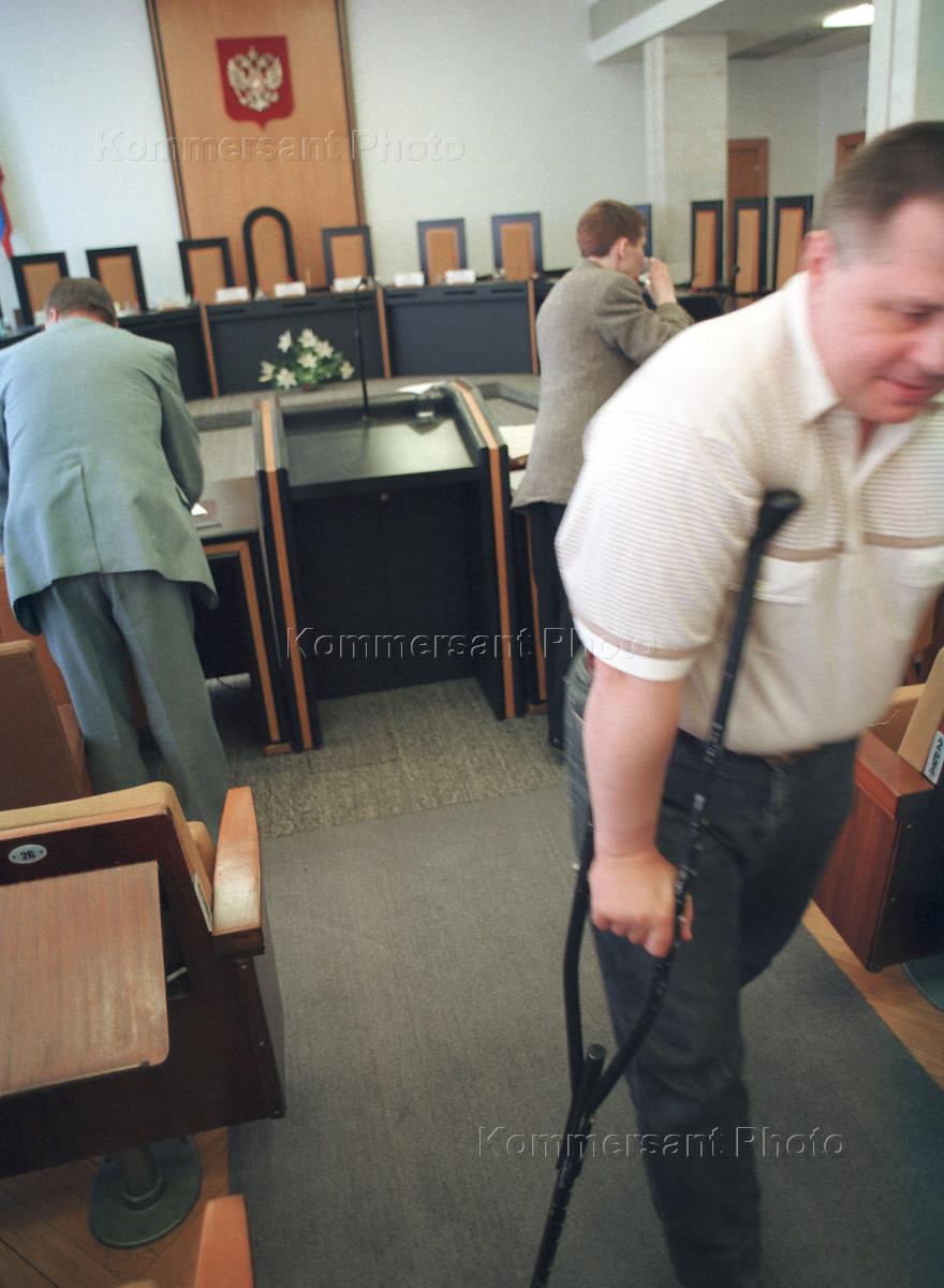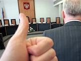 Участник заседания показывает большой палец в зале Конституционного суда России.