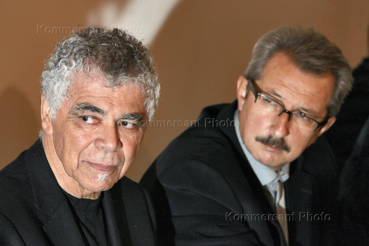 Художник-концептуалист и архитектор Рикардо Скофидио (слева) и директор болгарского архитектурного бюро Георгий Станишев (справа) на пресс-конференции по итогам заседания жюри Международной премии имени Я. Чернихова для молодых архитекторов "Вызов времени - 2008". Пресс-конференция прошла в Центральном доме архитектора.