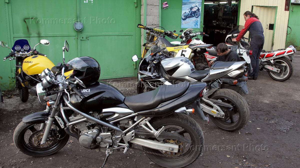 Директор и совладелец сервиса по ремонту мототехники "Моторемонт" Павел Филиппов в своей мастерской.