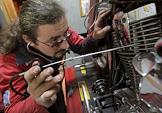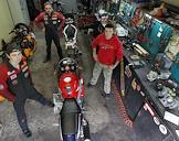 Директор и совладелец сервиса по ремонту мототехники "Моторемонт" Павел Филиппов (справа) в своей мастерской.