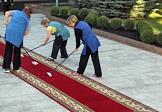 Подготовка к встречи президента Белоруссии Александра Лукашенко и председателя правительства России Владимира Путина. Женщины уборщицы подметают красную ковровую дорожку.