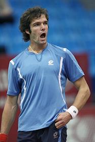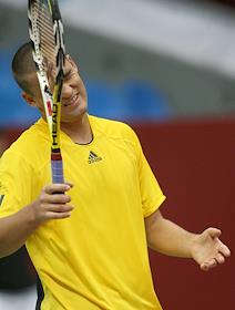 XIX Международный теннисный турнир "Кубок Кремля 2008" прошел в спорткомплексе "Олимпийский". Российский теннисист Теймураз Габашвили во время матча.