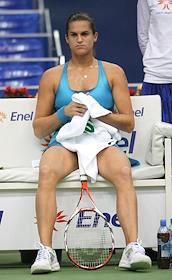 XIX Международный теннисный турнир "Кубок Кремля 2008" прошел в спорткомплексе "Олимпийский". Французская теннисистка Амели Моресмо во время матча.