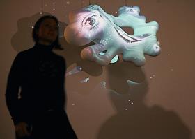 Выставка американского медиа-художника Тони Оурслера открылась в залах Мультимедийного Комплекса Актуальных Искусств в ЦСИ "Винзавод". Инсталляция "Кислотный инопланетянин".