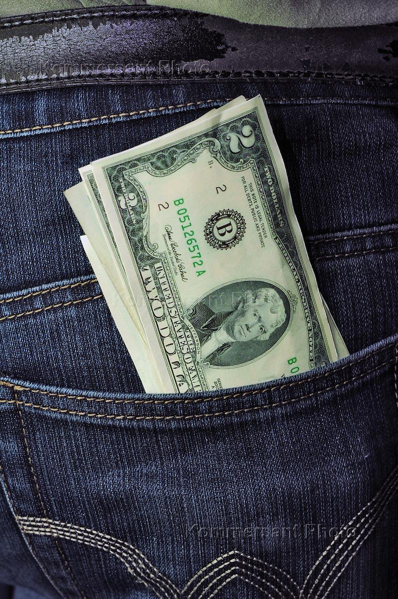 Жанровая фотография. Подоженная денежная купюра достоинством 2 доллара.