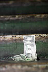 Жанровая фотография. Доллары лежат на каменной лестнице.