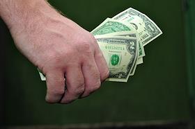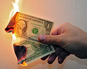Жанровая фотография. Горящая в руке однодолларовая купюра.