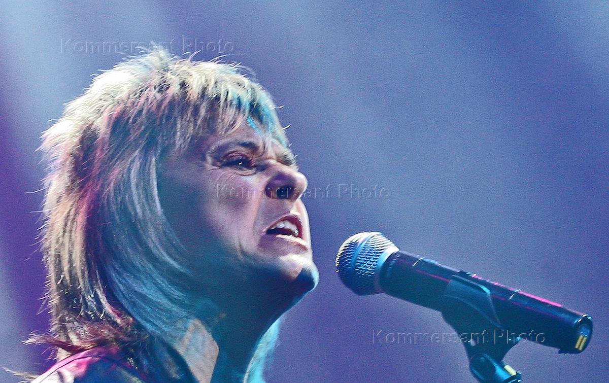 Певица Сьюзи Кватро (Suzi Quatro) во время выступления на концерте в честь 35-летия с момента выхода своего первого альбома.