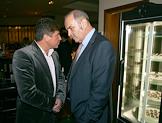 Член совета директоров "Национальной страховой группы" Михаил Негинский (слева) и ресторатор Александр Смелянский (справа) на презентации по случаю открытия art-cafe "Seasons. Осень".