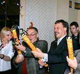 Слева направо: телеведущий Эльдар Жандарев, балерина Инна Гинкевич и режиссер Андрей Житинкин на презентации по случаю открытия art-cafe "Seasons. Осень".