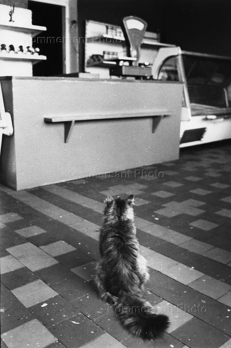 The economic crisis in Russia in the late 80's. Empty shop counters.