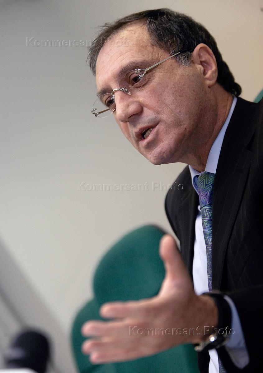 Minister of foreign affairs of Republic of Abkhazia Sergey Shamba during a press conference "Outcome of the Geneva conference on guaranteeing security of Abkhazia and South Ossetia". The conference took place at the Interfax news agency.