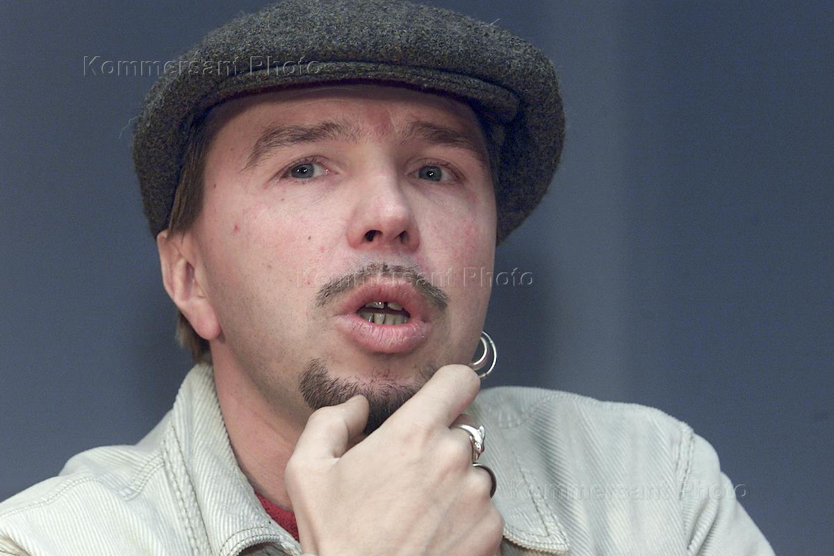Режиссер, музыкант Гаррик Сукачев во время пресс-конференции, посвященной выходу в видеопрокат его фильма "Праздник". Пресс-конференция состоялась в клубе "Кино".