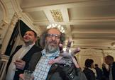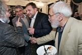 Слева направо: председатель Московской городской думы Владимир Платонов, адвокат Генрих Падва и заместитель председателя комитета Государственной думы России по бюджету и налогам Андрей Макаров на праздновании дня рождения радиостанции "Эхо Москвы" в ресторане "Прага".