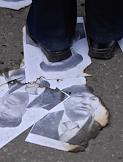 Всероссийская акция "День народного гнева", организованная "Авангардом красной молодежи" и "Объединенным гражданским фронтом", прошла на Триумфальной площади. Обгоревшие портреты мэра Москвы Юрия Лужкова на асфальте.