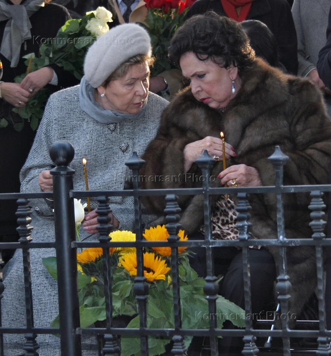 The widow of the first russian president Boris Yeltsin Naina (at the left) and the widow of conductor Mstislav Rostropovich, opera singer Galina Vishnevskaya (on the right) at Mstislava Rostropovich's tomb on the New maiden cemetery.