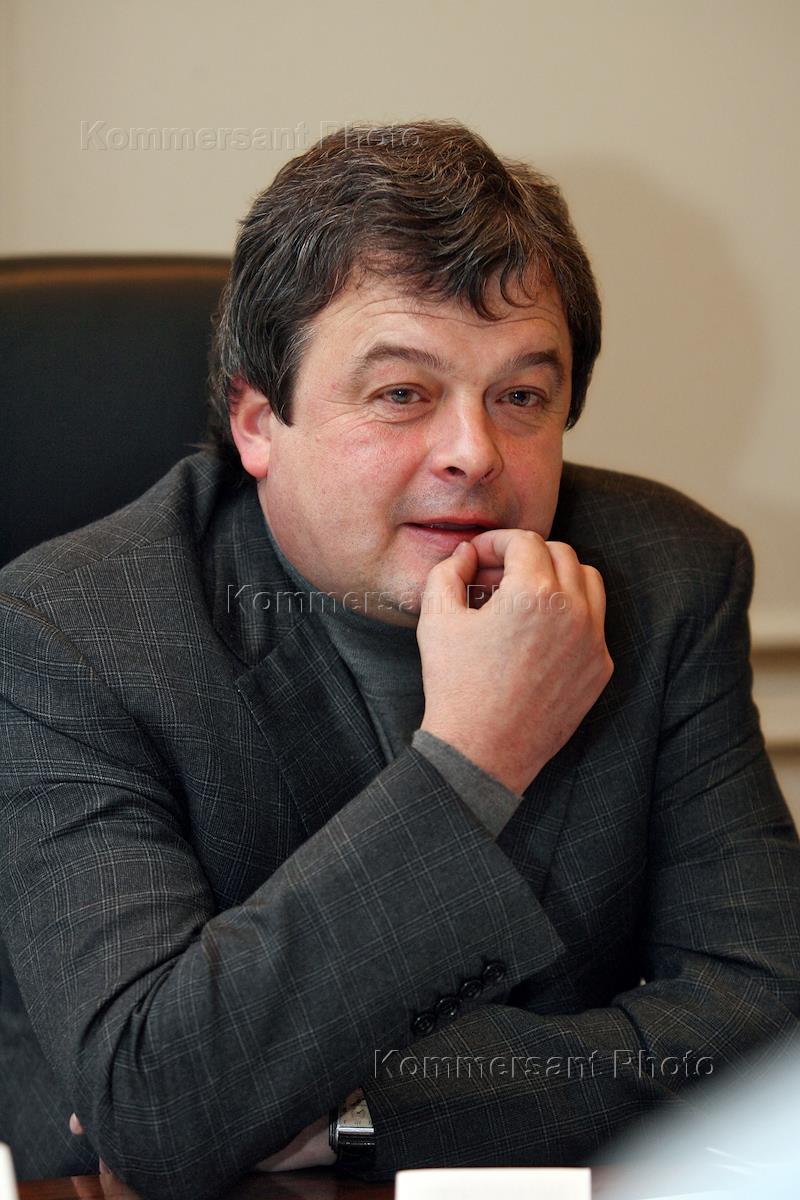 The chairman of board of directors of ZAO СУ-155 Mickhail Balakin during interview.