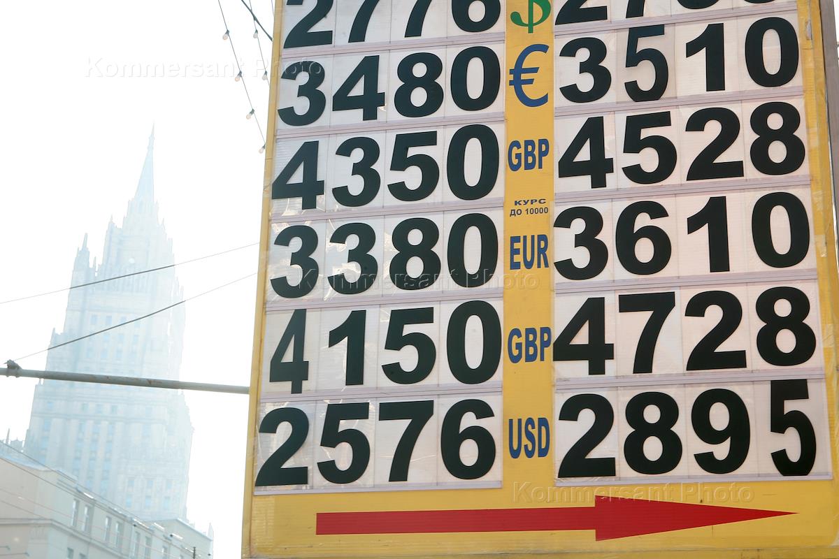Пункт обмена валюты. Инфомационное табло курса валюты.
